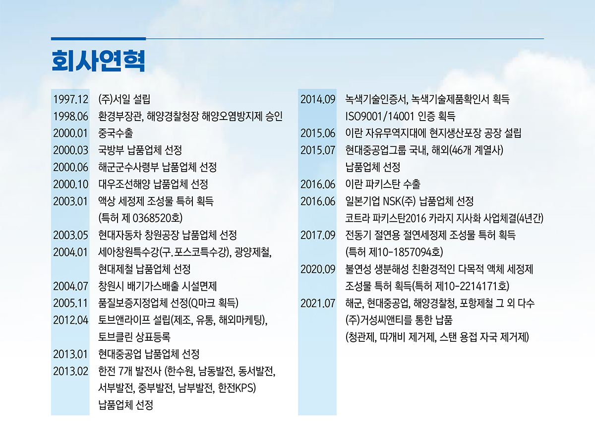 환경보존에 앞장서는 친환경 세척제 선두기업 (주)서일